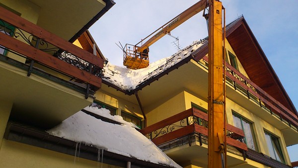 Podnośnik koszowy prace zimą w nowym targu